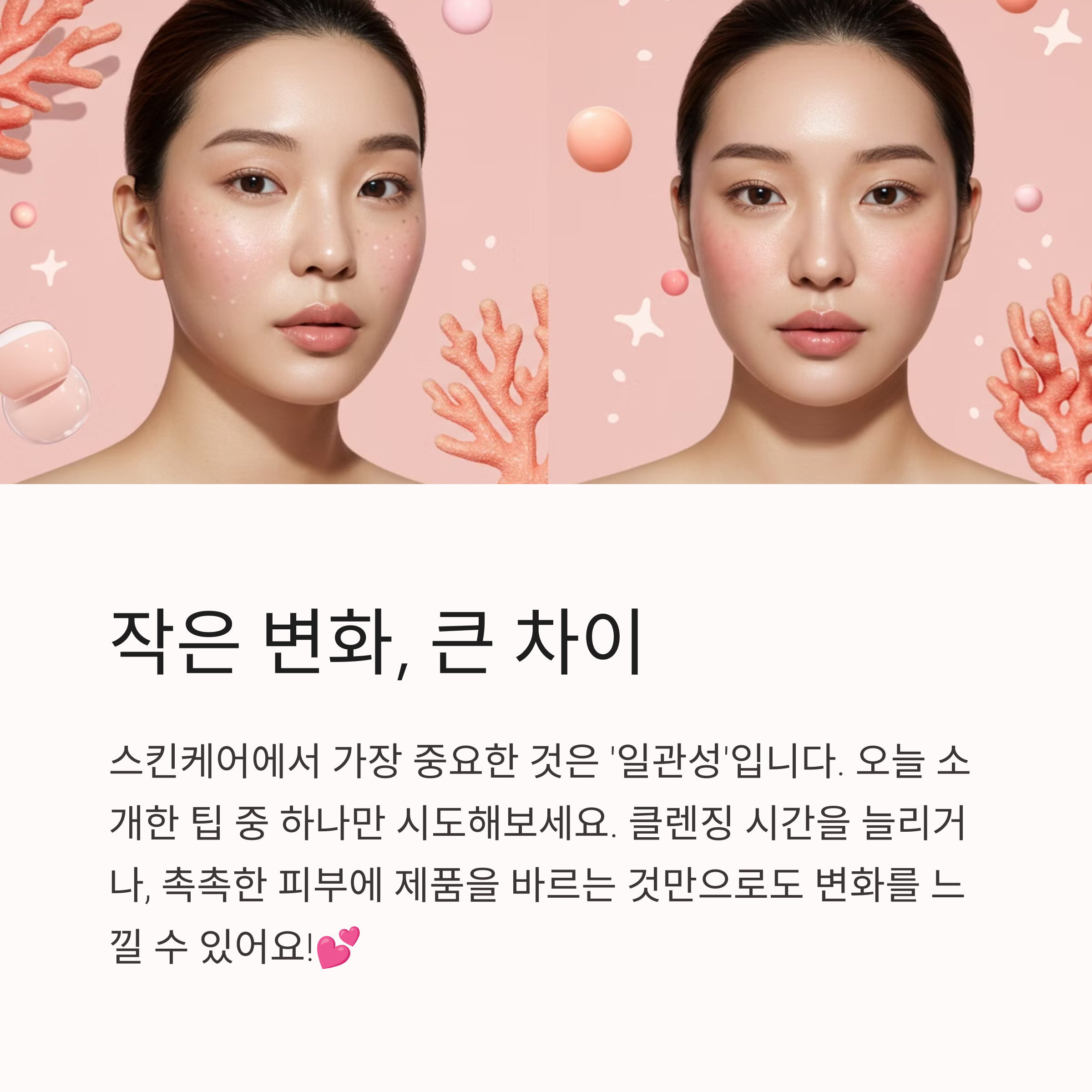 연구 결과와 실제 사용자들의 경험을 바탕으로, 작은 변화만으로도 피부를 크게 개선할 수 있는 방법들을 모아봤어요. 다음 중 하나만 실천해도 피부가 달라지는 것을 경험할 수 있을 거예요!