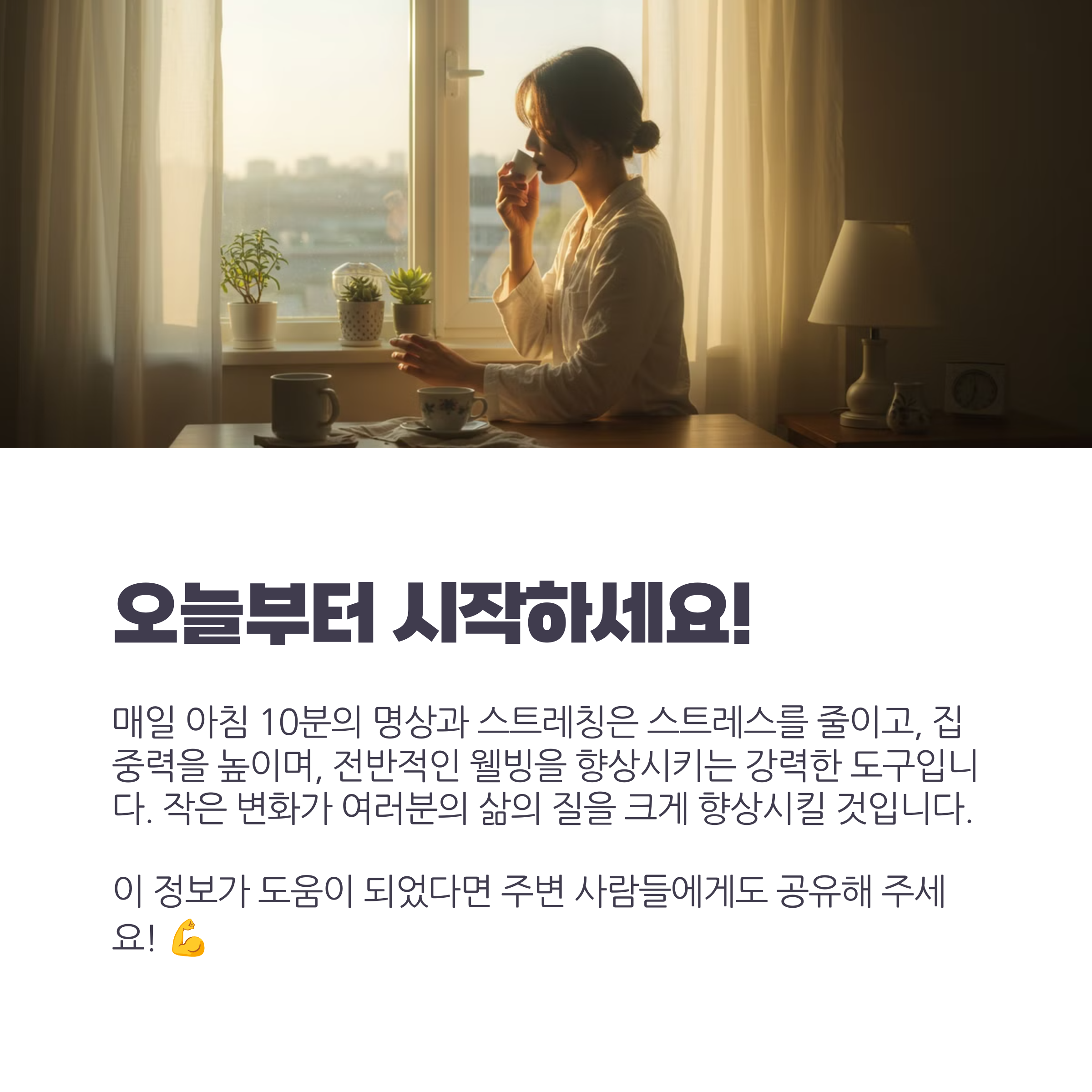 오늘부터 시작해 보세요! 작은 변화가 여러분의 삶의 질을 크게 향상시킬 것입니다. 😊