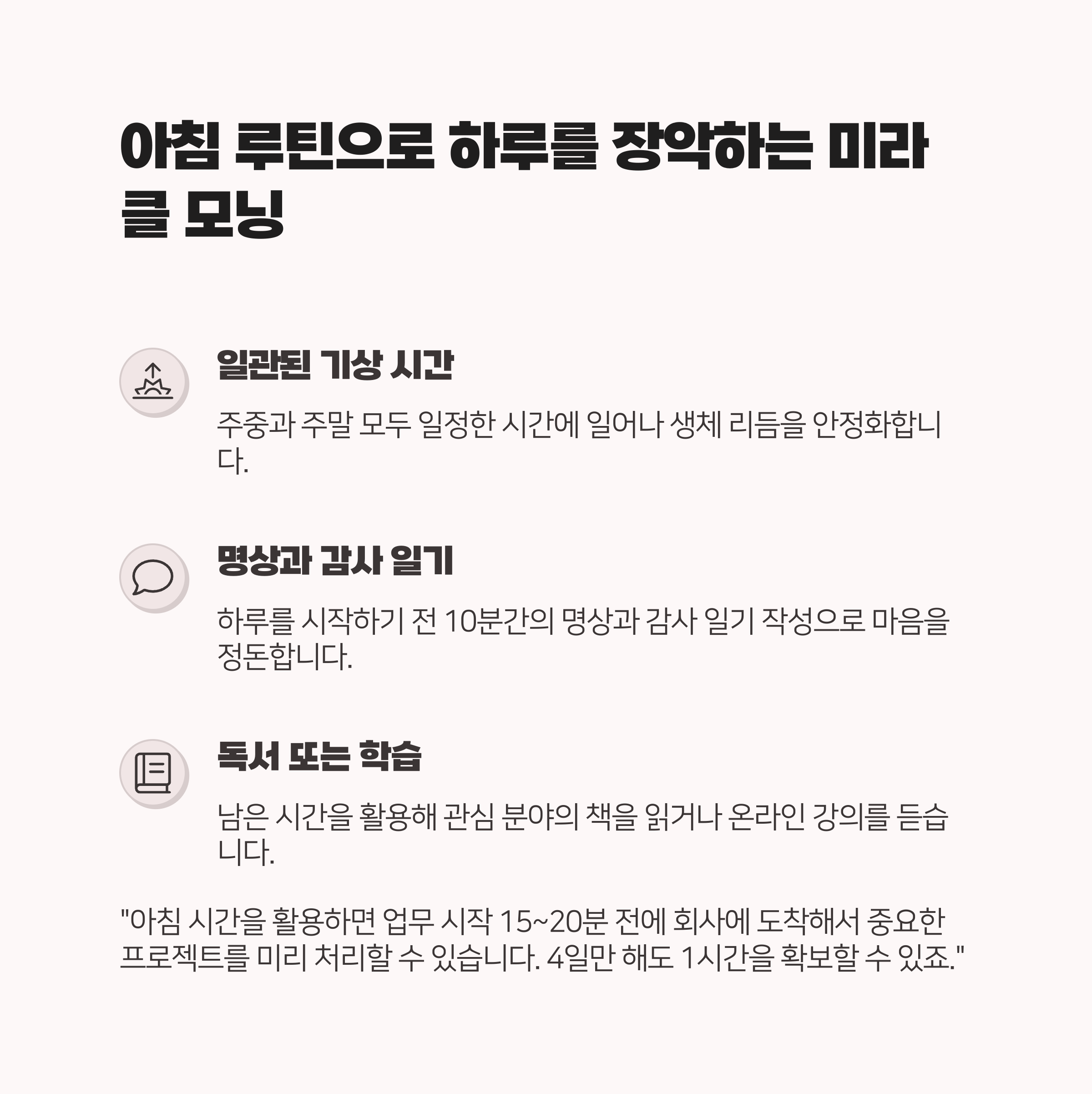 1. 아침 루틴으로 하루를 장악하는 '미라클 모닝' 전략
