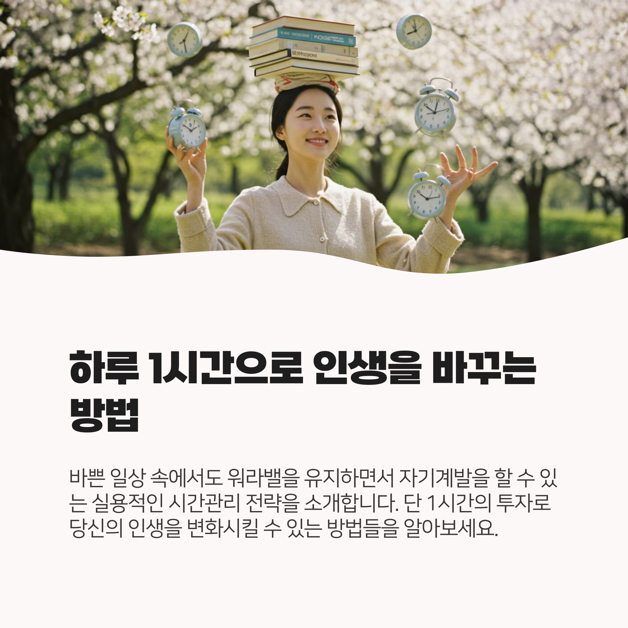 하루에 단 1시간만 투자해도 당신의 인생을 변화시킬 수 있는 방법들을 함께 알아보겠습니다.
