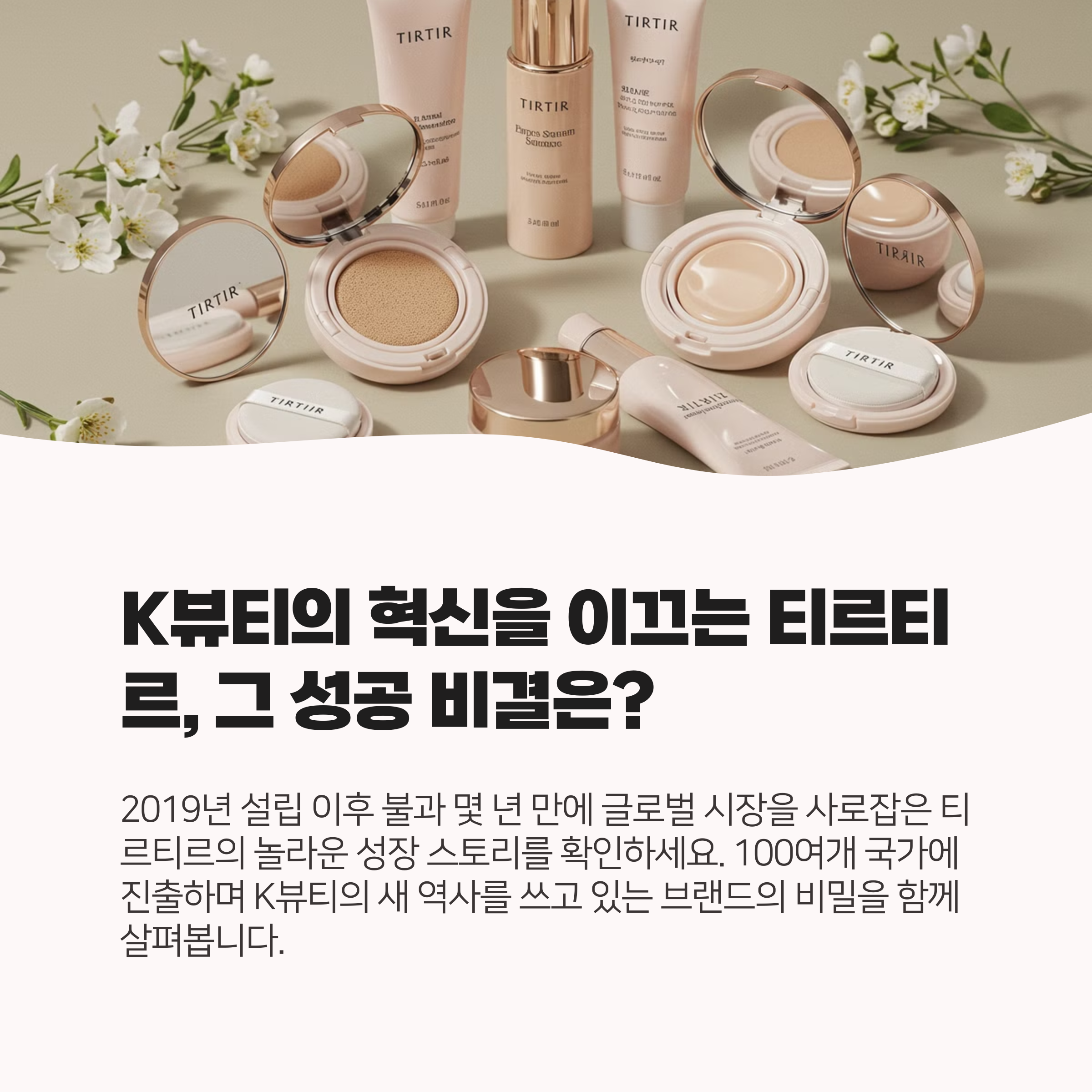 바로 '티르티르(TIRTIR)'입니다. 2019년 설립 이후 불과 몇 년 만에 글로벌 시장에서 놀라운 성과를 거두며 K뷰티의 새로운 역사를 쓰고 있는 티르티르의 성공 스토리와 혁신적인 전략에 대해 알아보겠습니다.