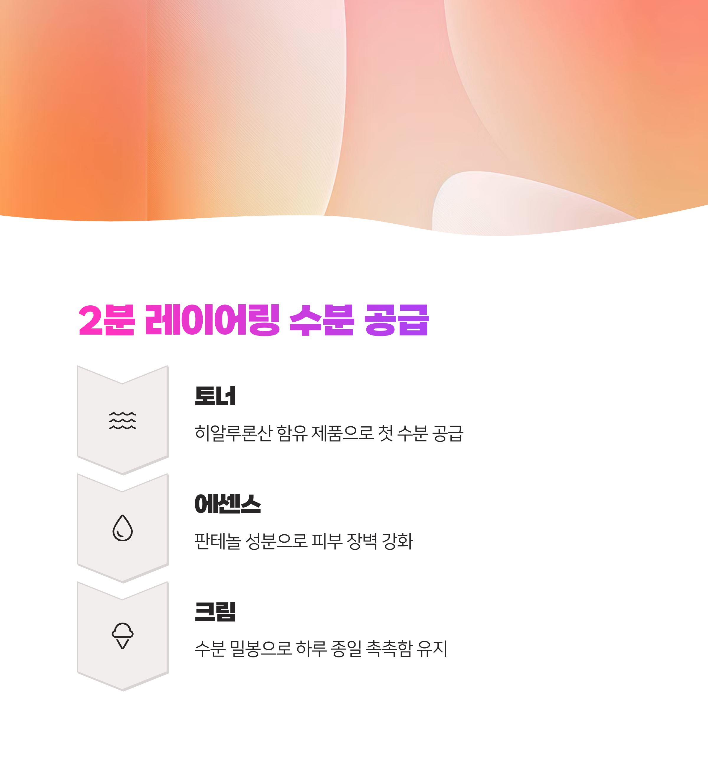 세안 후 바로 토너-에센스-크림 순으로 빠르게 레이어링해 주세요.