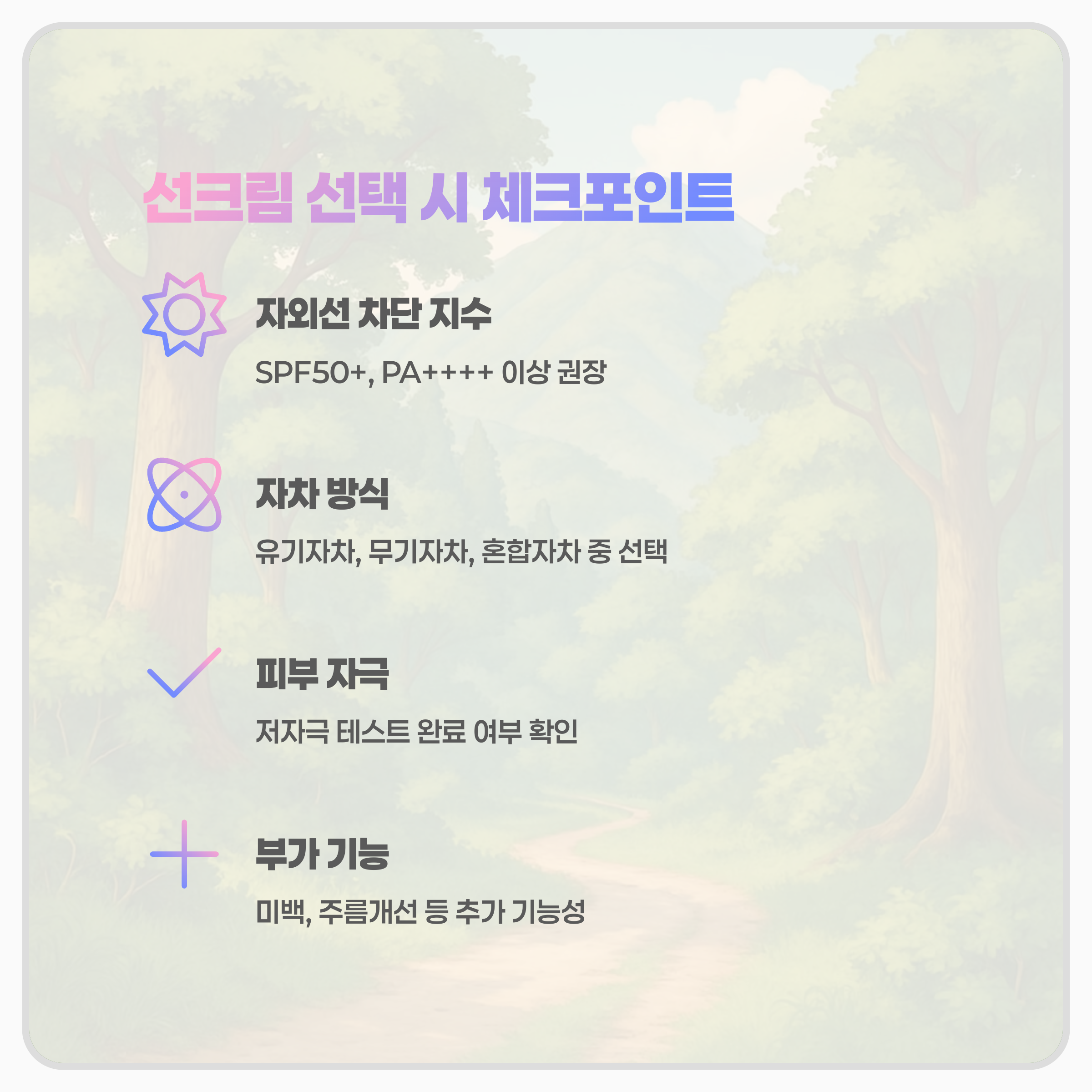 선크림을 고를 때는 다음 사항을 꼭 체크해보세요: