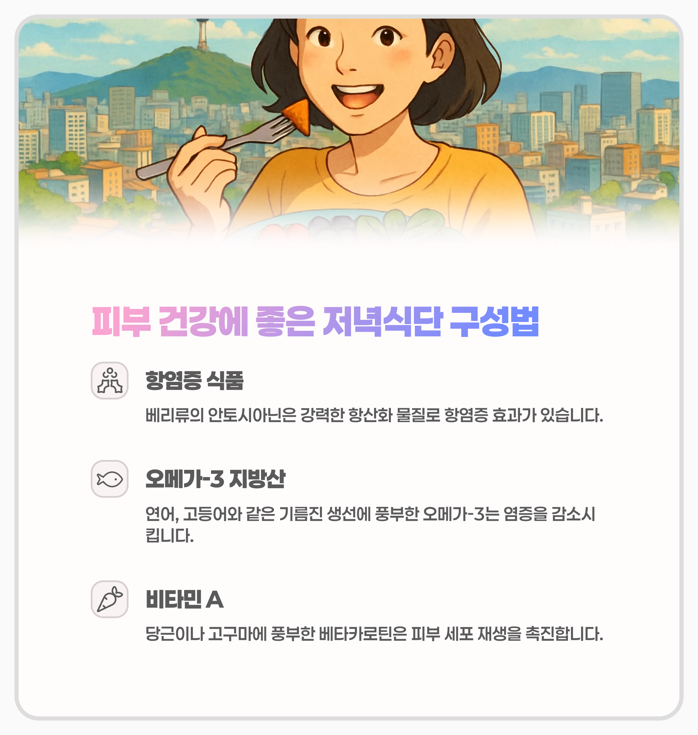 3. 피부 건강에 좋은 저녁식단 구성법