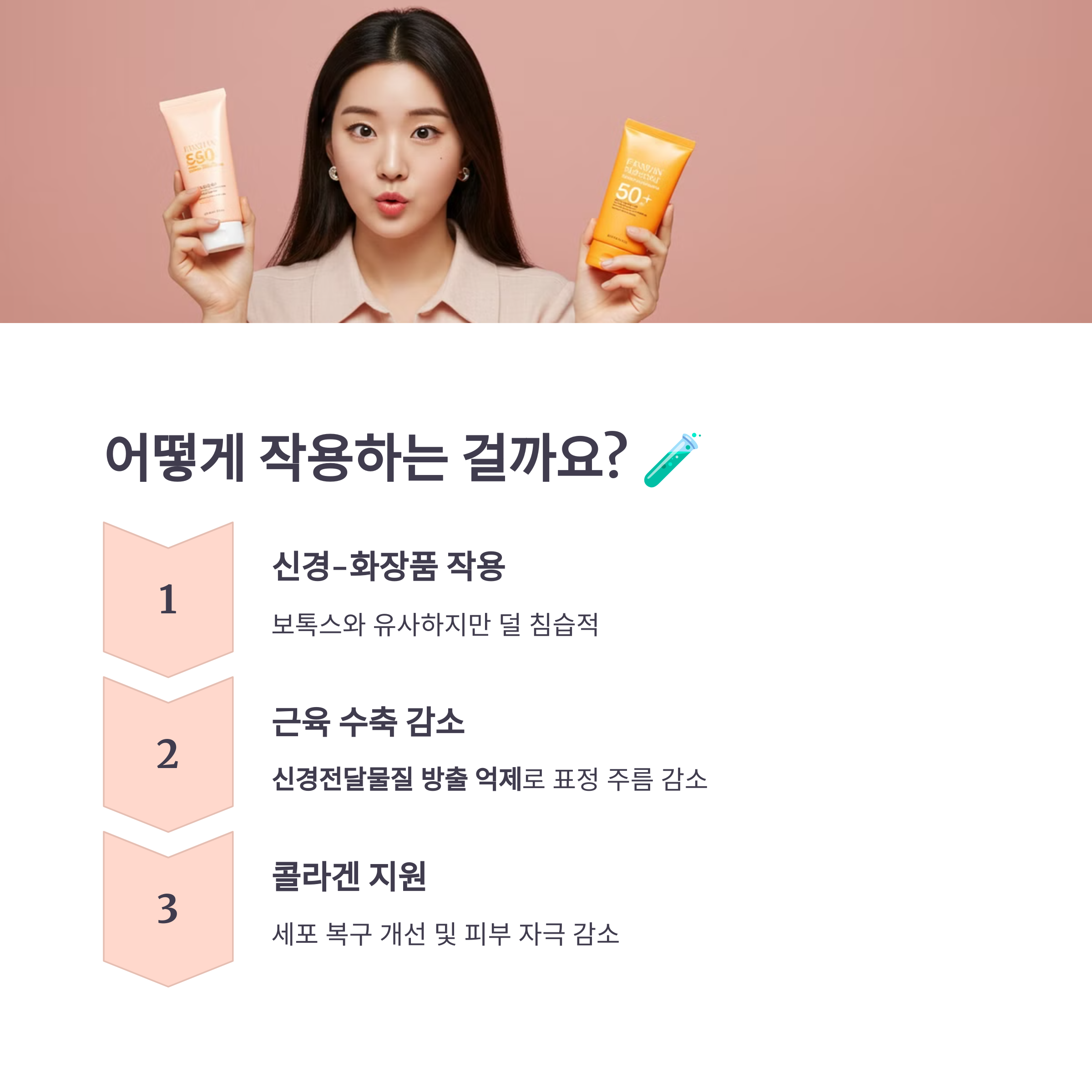 "병 속의 보톡스"라는 별명을 가진 이 성분은 실제 보톡스처럼 주름을 완화시켜주는 효과가 있답니다!